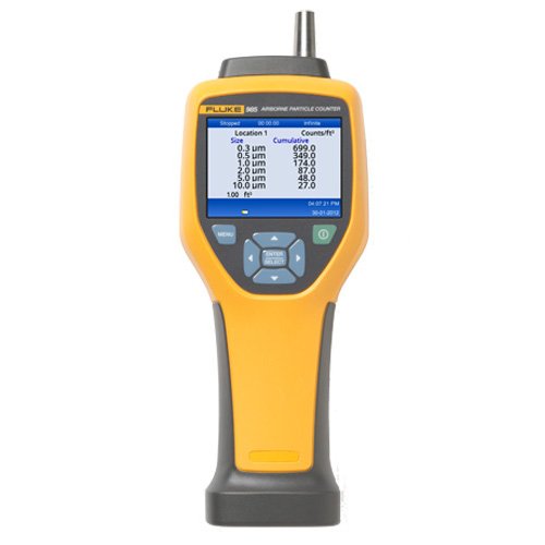 The Fluke 985 particle counter is an essential tool in the facility maintenance, HVAC and IAQ professional’s toolbox. From filter testing to indoor air quality investigations, the particle counter equips the user with valuable data concerning the concentration and source of particulates in the tested environment. The new Fluke 985 Particle Counter is ideal for troubleshooting and monitoring indoor air quality issues and verifying HVAC filter performance and critical locations for ISO Class 5–9 certification. With the ultra-light weight ergonomic design, easy to view color screen with intuitive icons, on-screen trend graphs for easy and quick analysis, the Fluke 985 is a must for any maintenance, HVAC and IAQ professional.