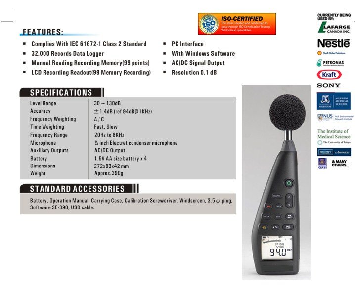 • Complies with IEC 61672-1 class 2 standard.