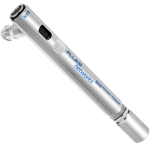 The Fluke Networks Pocket Toner NX8 is an advanced and versatile Pocket Toner tool tests VDV cables 8 times faster for continuity, AC and DC voltage (low voltage protection and verification up to 52 volts), opens, shorts, 50-75 Ω termination, and polarity with optional Dial Tone Detective adapter. It has all the features of the NX1 and NX2 including the ability to test eight outlets at once. The eight segment LED display shows if a short exists, if there is an open circuit, AC or DC voltage (up to 52 volts), simple, direct continuity or which of the eight ID caps matches the line being tested.