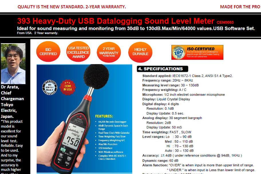 CEN0053-393 Heavy-Duty USB Datalogging Sound Level Meter-USA