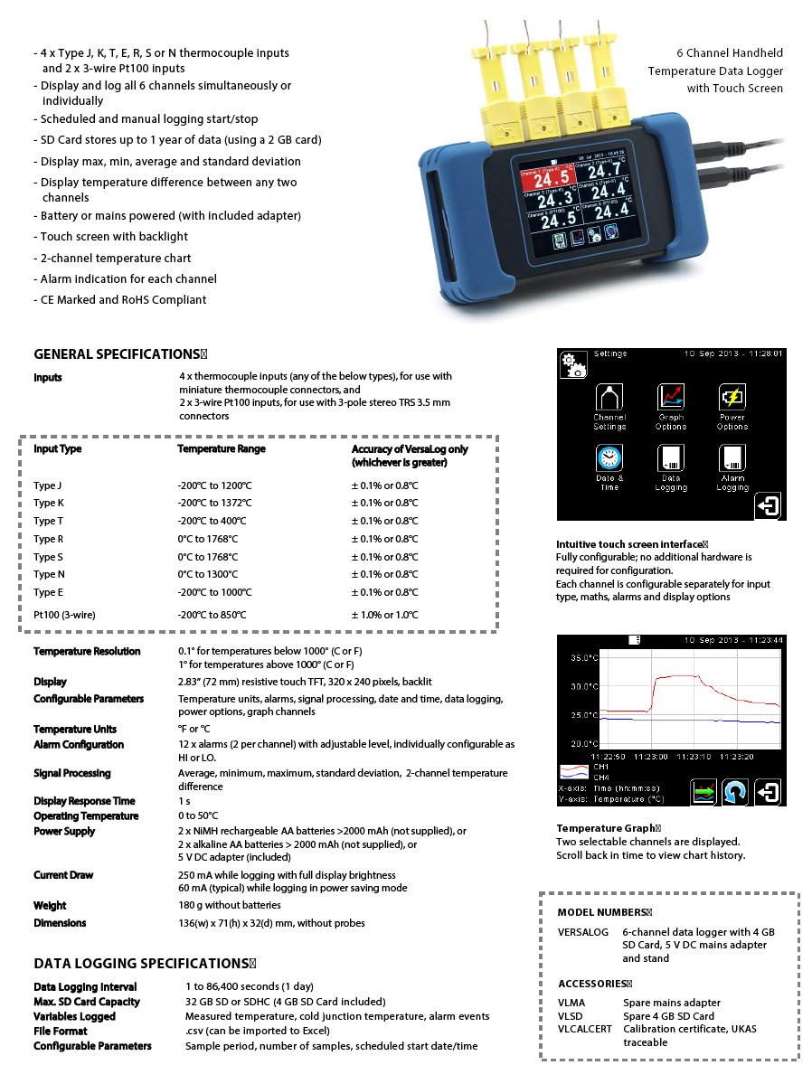 IRI1100-VERSALOG 6 CHANNEL DATALOGGER (4 CHANNEL THERMOCOUPLE INPUT/2 CHANNEL PT100) WITH SCREEN/SOTWARE